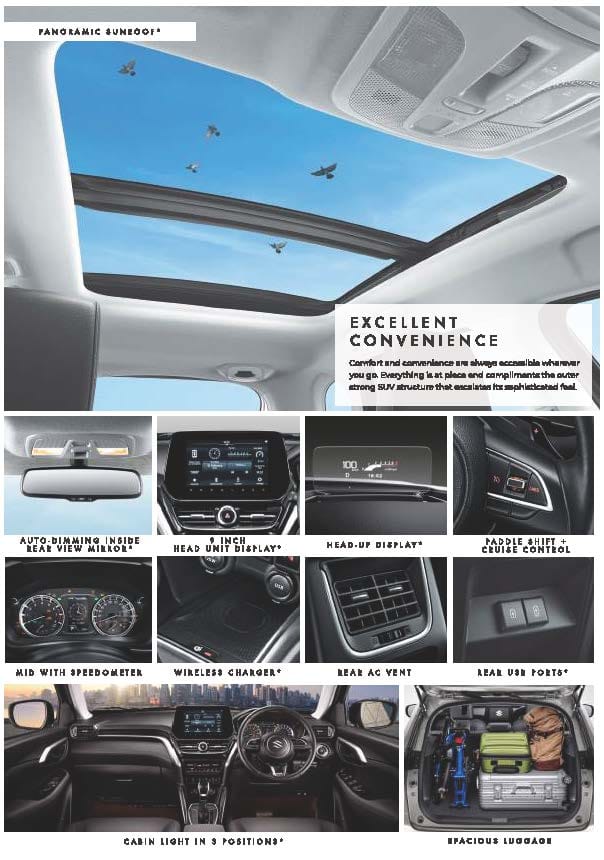 Kenyamanan dan kemudahan selalu didapatkan kemanapun Anda pergi. Grand Vitara menghadirkan interior yang lapang dan premium, semakin lengkap dengan berbagai fitur modern untuk mendukung impresi berkendara anda.