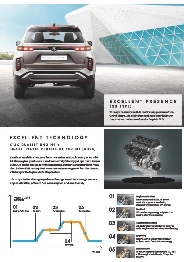 Grand Vitara kembali hadir dengan peningkatan memukau dan karakter yang tajam. Dilengkapi mesin yang efisien dengan Smart Hybrid Vehicle by Suzuki (SHVS). Jelajahi setiap rintangan dengan beragam fitur terkini. Grand Vitara merupakan komitmen Suzuki dalam menghadirkan SUV yang handal.